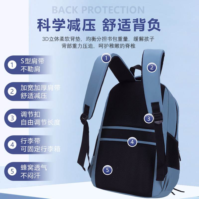 新款中小学生书包男孩儿童3-6年级大容量初中生双肩包超轻便减负护脊时尚潮流背包广告定制Logo印字