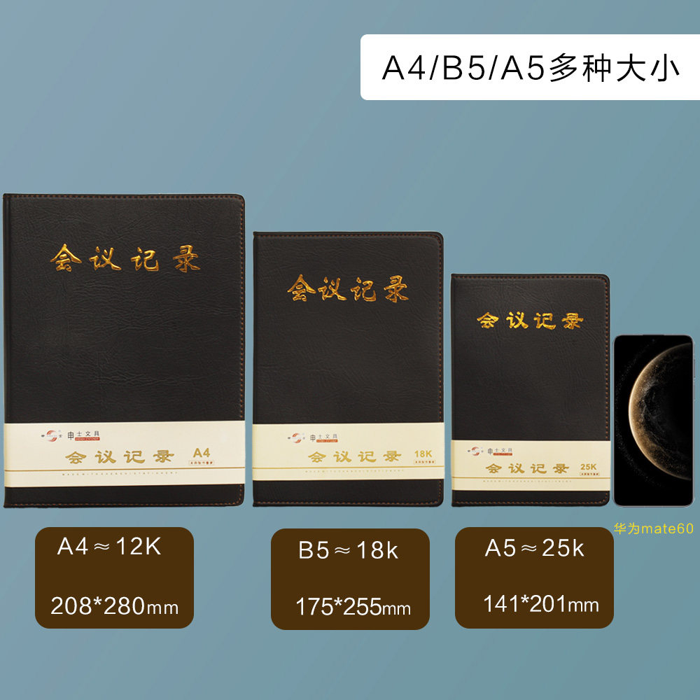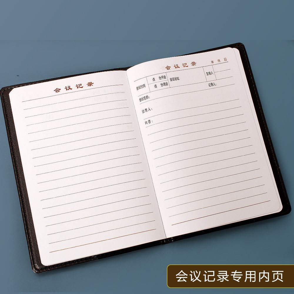 申士A4会议记录本专用B5黑皮面软皮面办公笔记本A5工作会议记事本