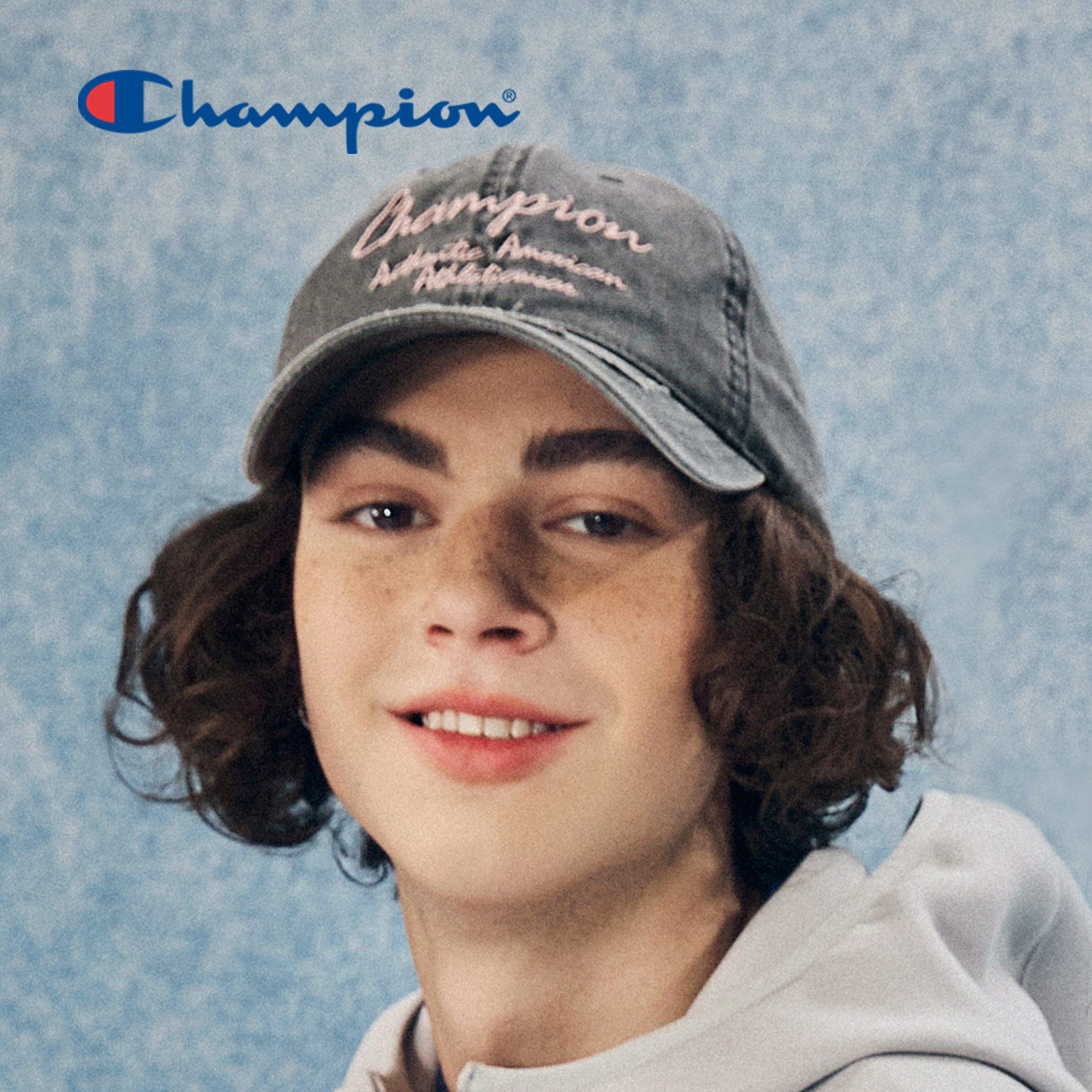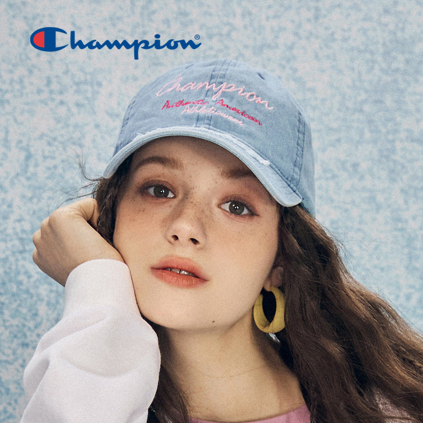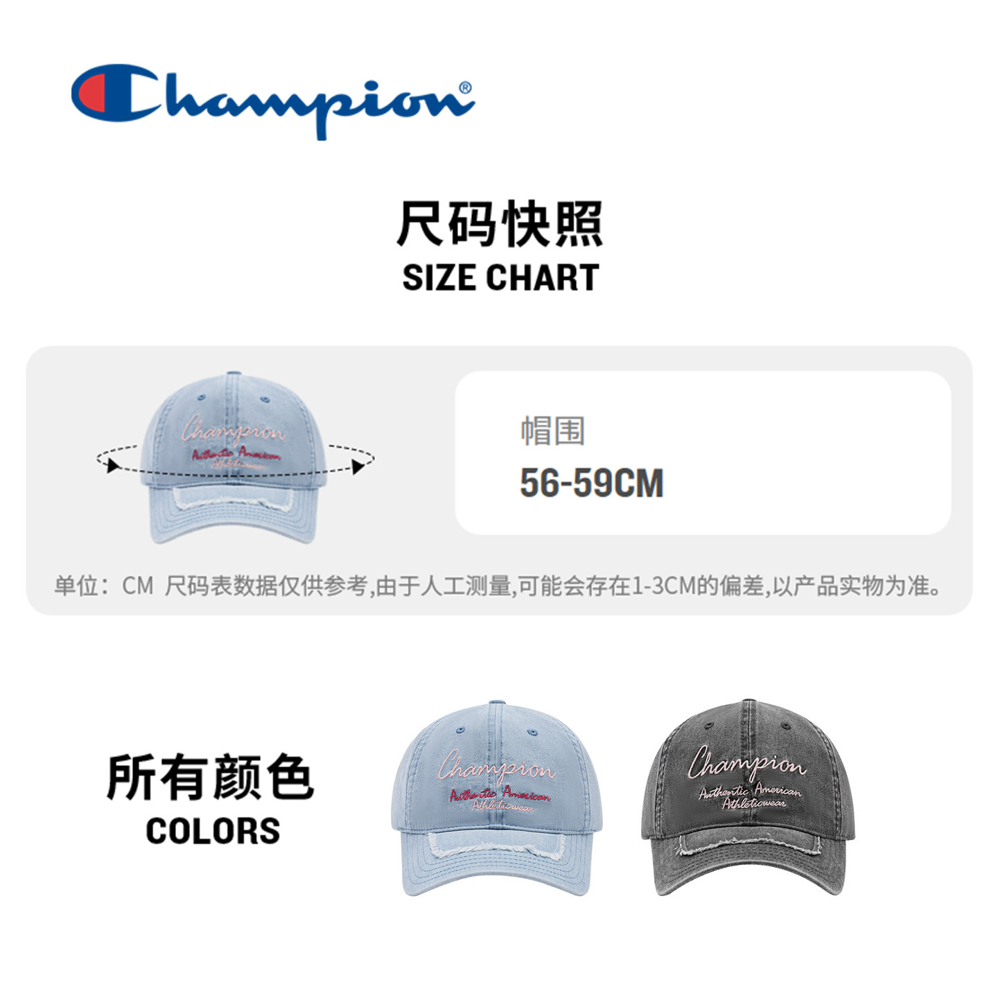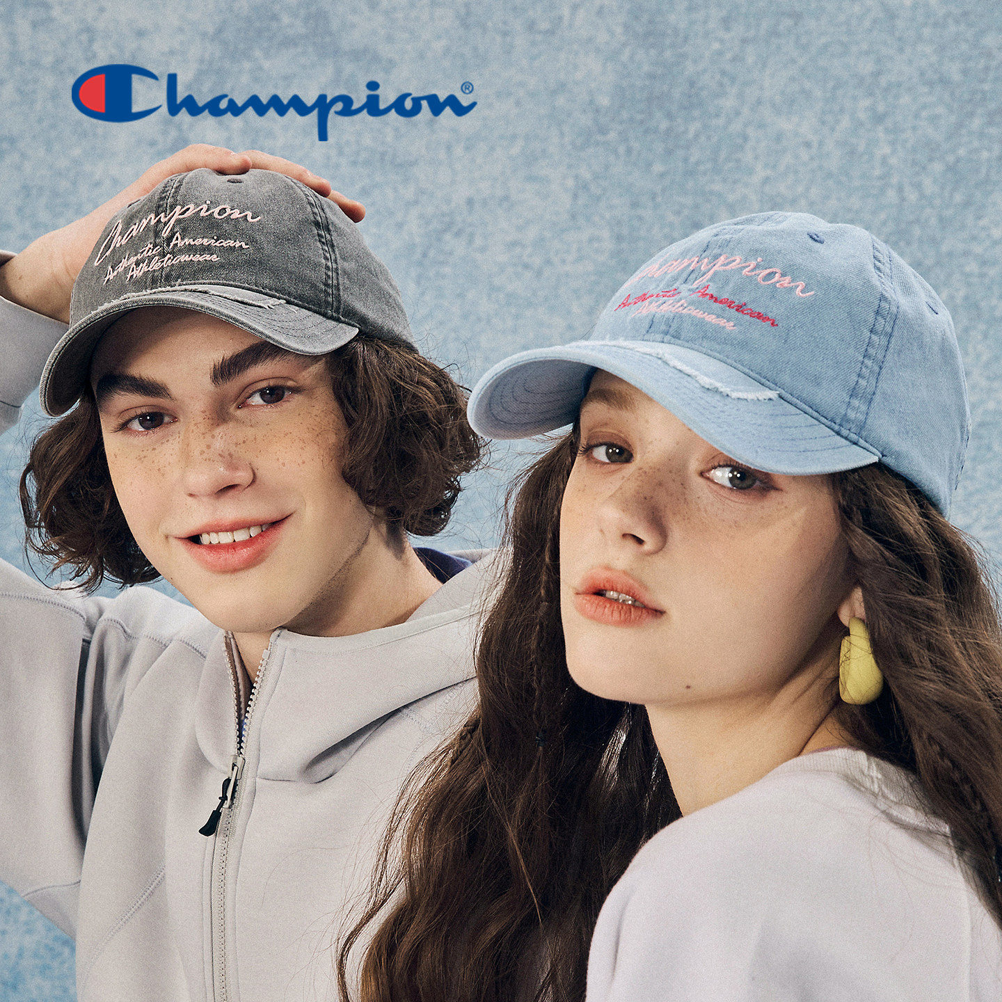 champion冠军做旧牛仔刺绣棒球帽复古校园男女情侣鸭舌帽子遮阳