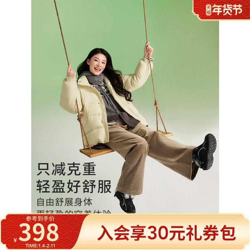 【鞠婧祎同款】鸭鸭2025年冬新款百搭短款女士纯色立领羽绒服外套