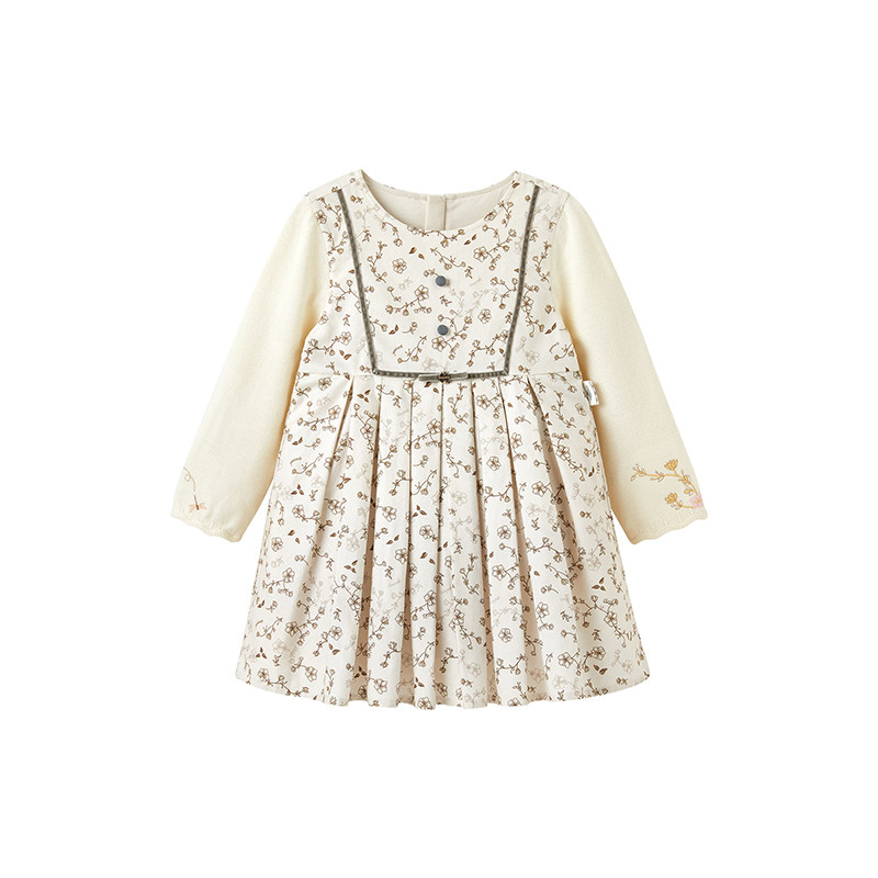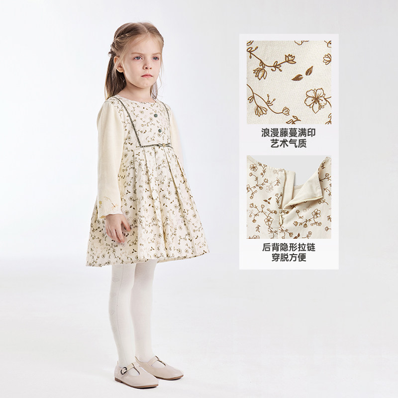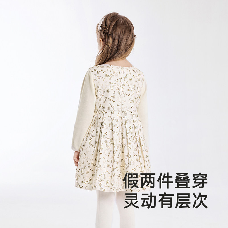 【商场同款】英氏女童连衣裙假两件裙子秋季长袖百褶裙新款