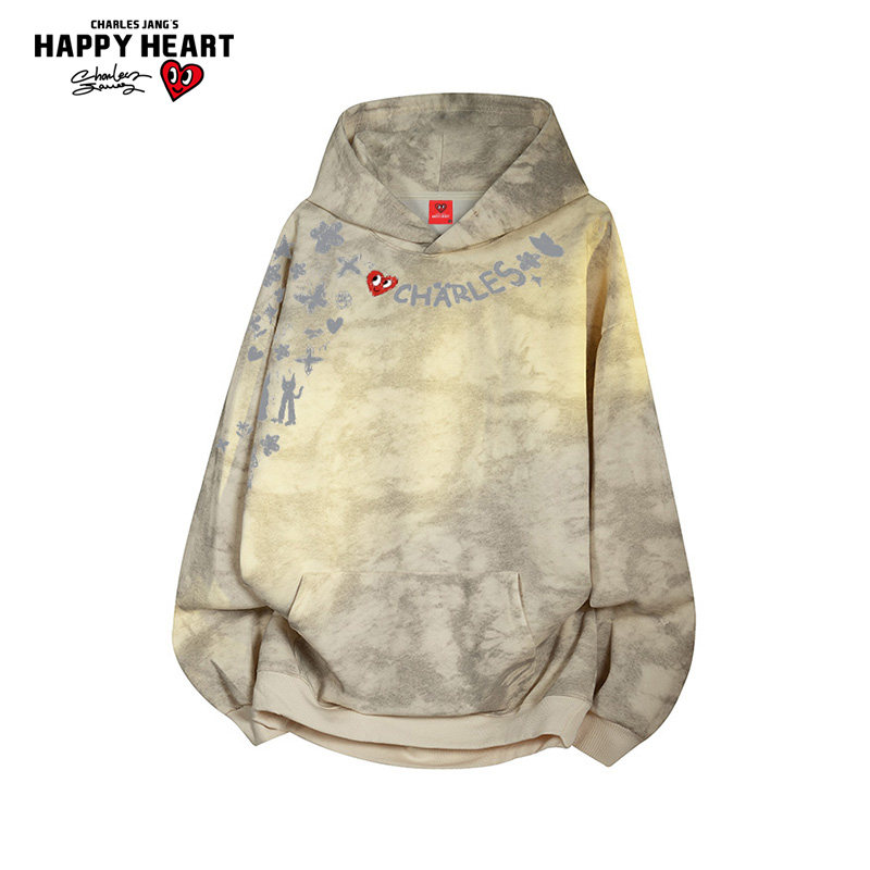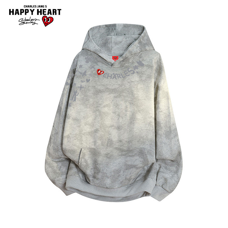 查尔斯桃心扎染连帽卫衣男涂鸦印花秋冬季慵懒风宽松爱心情侣上衣
