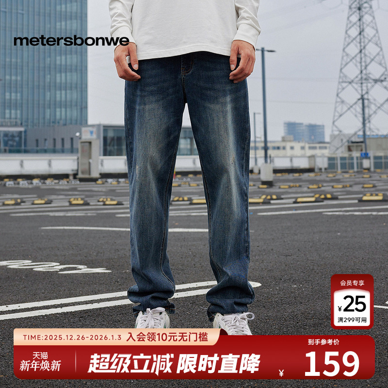 美特斯邦威男装小脚水洗牛仔裤秋冬时尚潮流宽松垂感休闲舒适下装