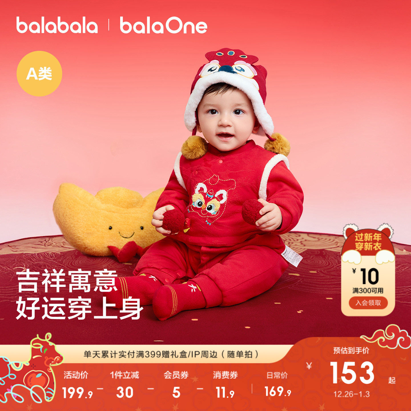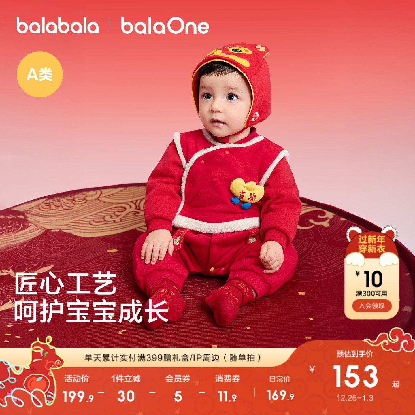 巴拉巴拉童装宝宝连体衣哈衣新生婴儿衣服2025新款拜年服红色国风