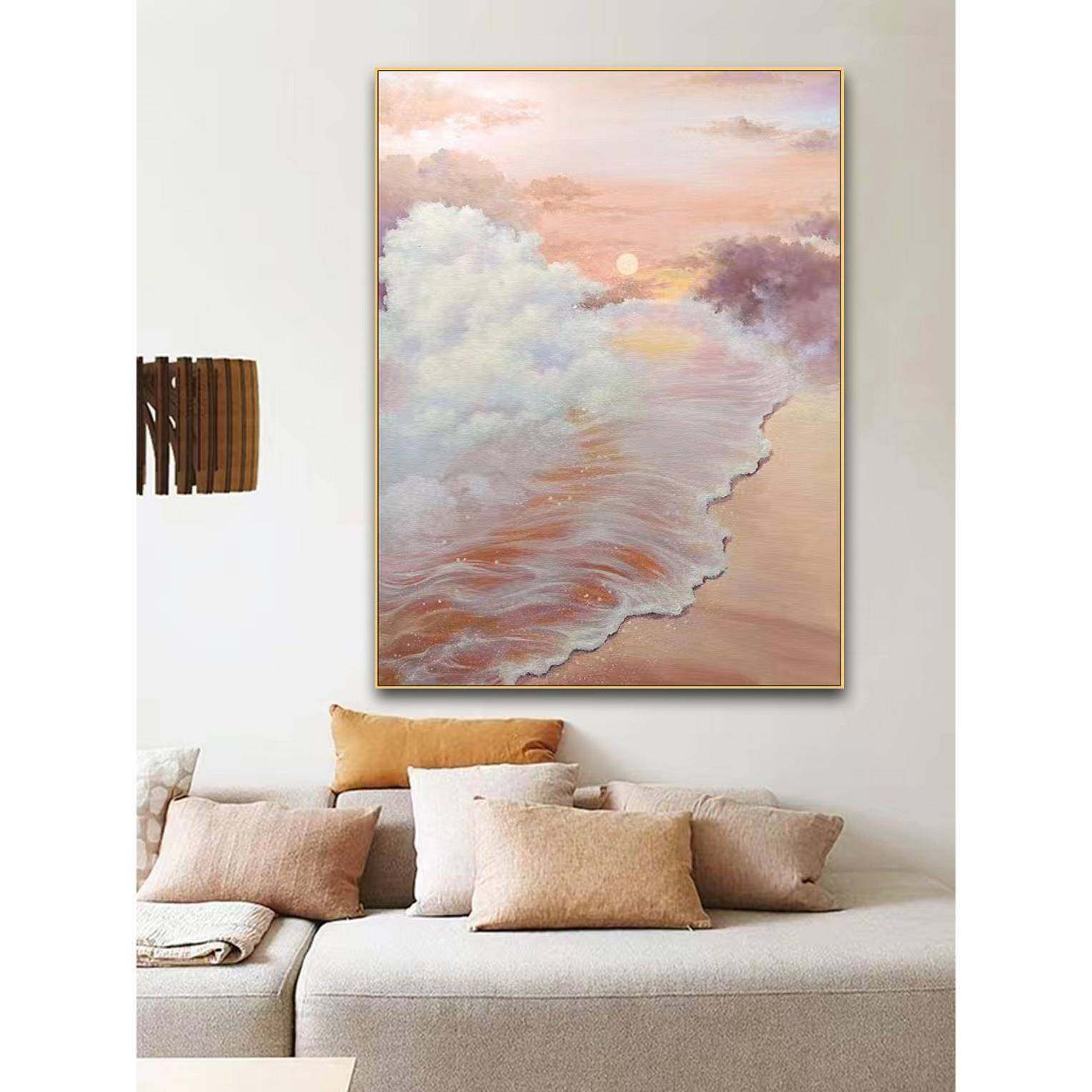 现代简约纯手绘立体油画客厅玄关装饰画走廊过道大海日出风景挂画