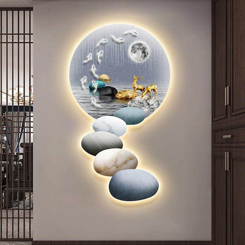 新款大气led带灯轻奢入户玄关装饰画简约现代挂画走廊过道墙壁画