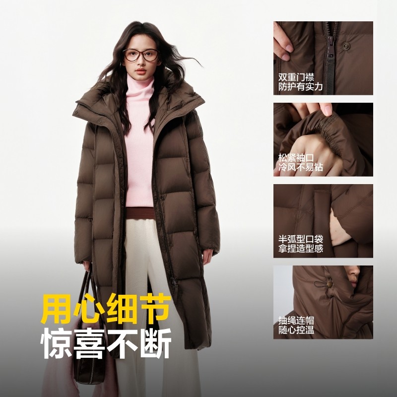 波司登奥莱2025新款冬季女连帽羽绒服休闲时尚百搭加厚长款过膝