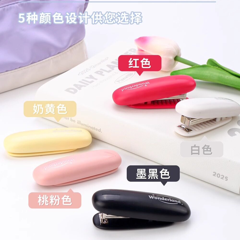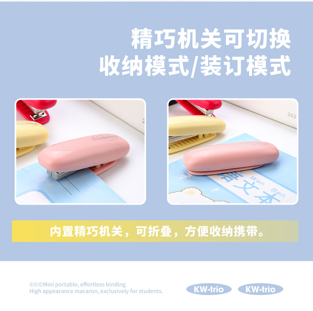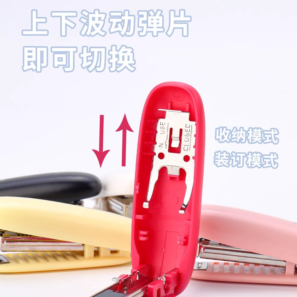 可得优订书机迷你小号学生用可折叠便携式钉书机小型订书器口袋式马卡龙色省力型装订文具5136办公