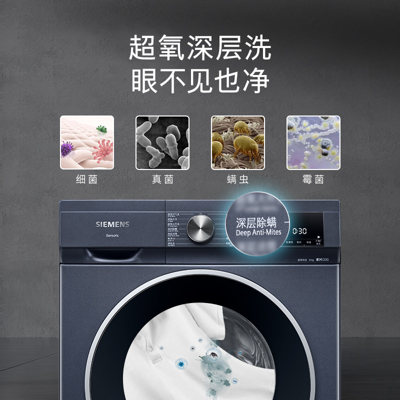 【蓝宝石超氧】西门子10kg滚筒洗衣机家用大容量变频智能除渍2E10