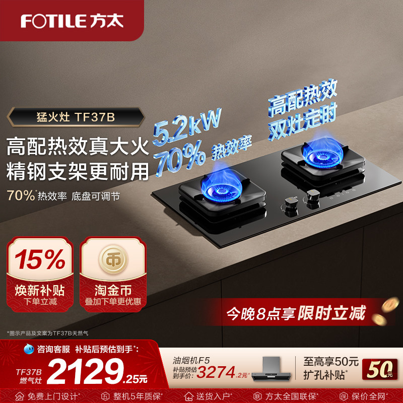 【新品】方太燃气灶TF37B联动定时家用天然气换装猛火电器旗舰店