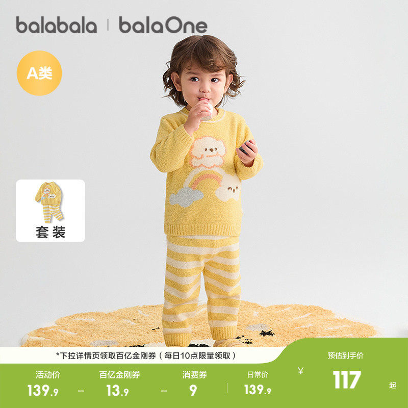 巴拉巴拉balaOne婴儿内衣套装男女童冬家居秋衣裤半边绒加厚保暖
