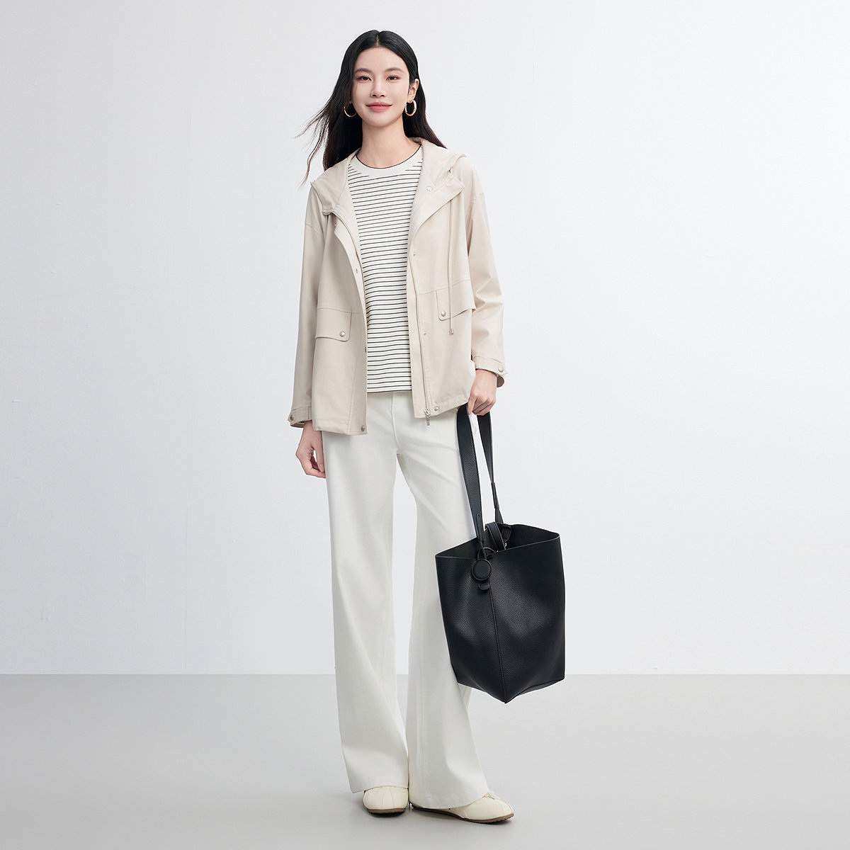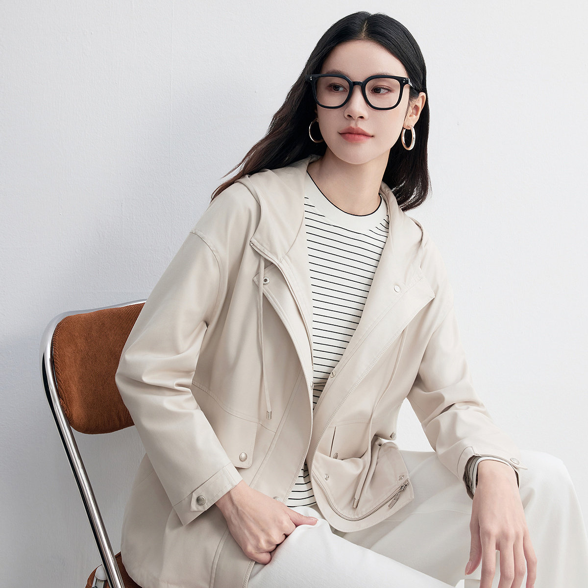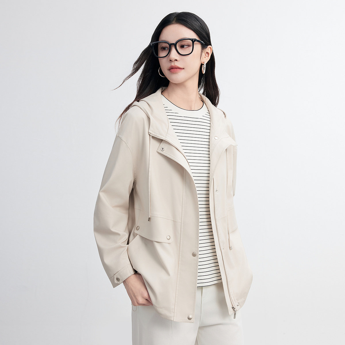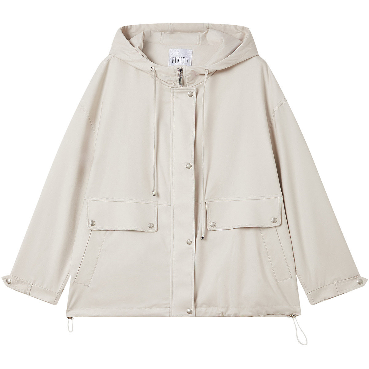 【天然真丝】FINITY菲妮迪短外套2026春新款米色连帽桑蚕丝上衣女