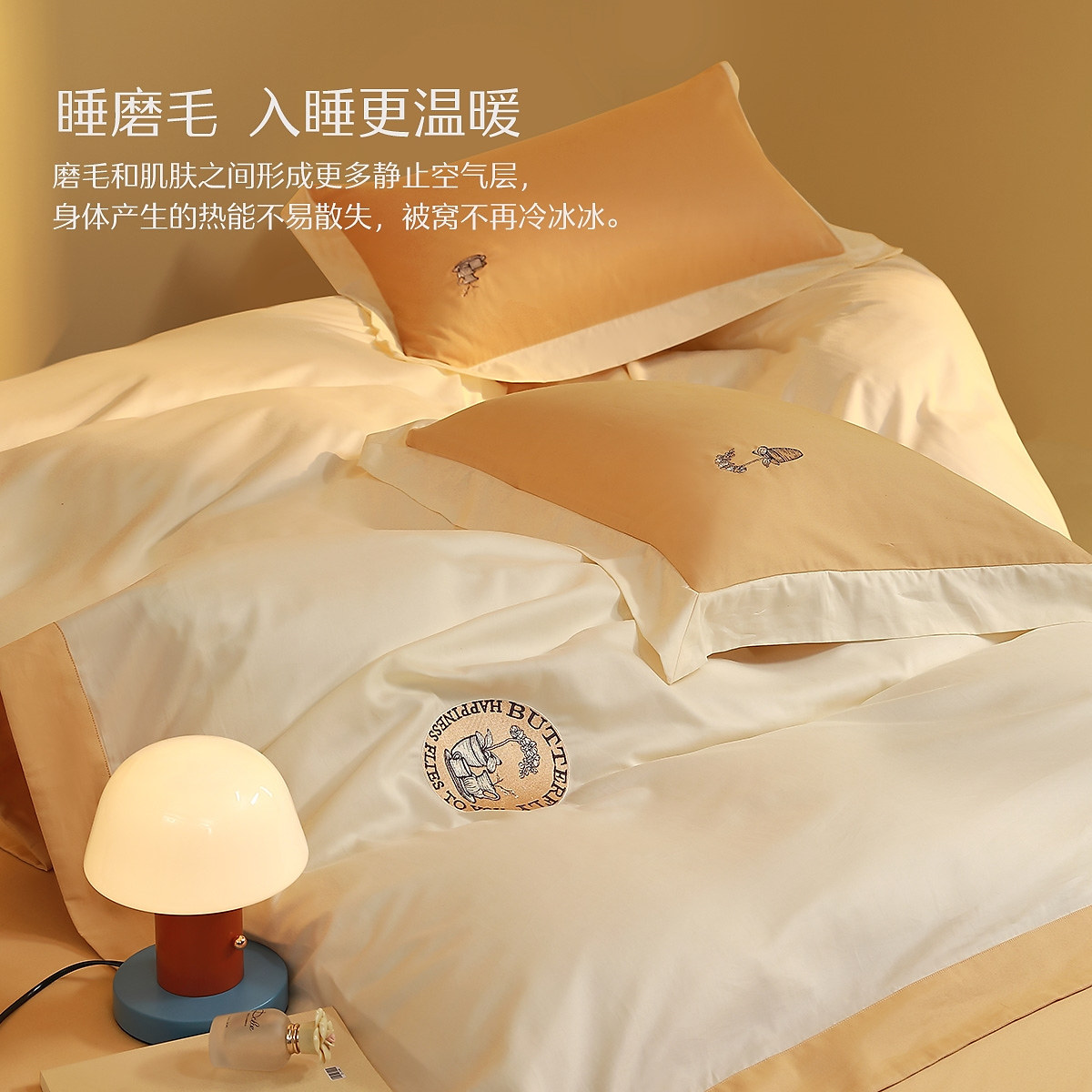 水星家纺长绒棉磨毛四件套全棉抗菌套件保暖床单被套床上用品