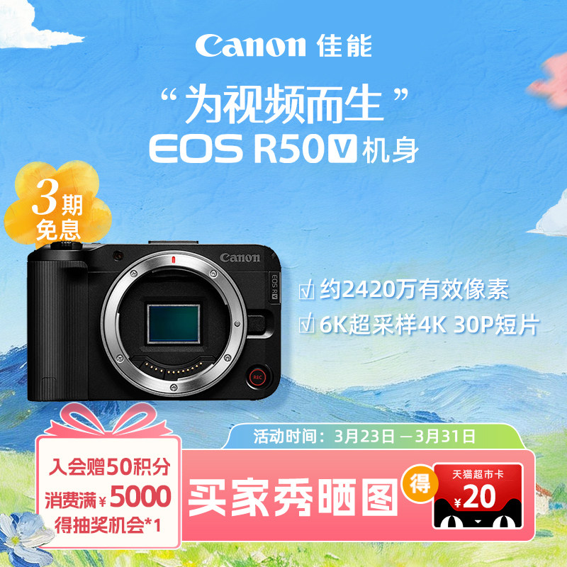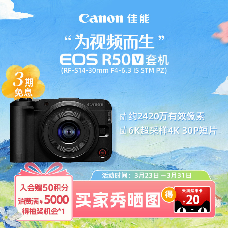 [标准套餐]Canon/佳能 EOS R50V 电动变焦入门摄影4K微单直播相机