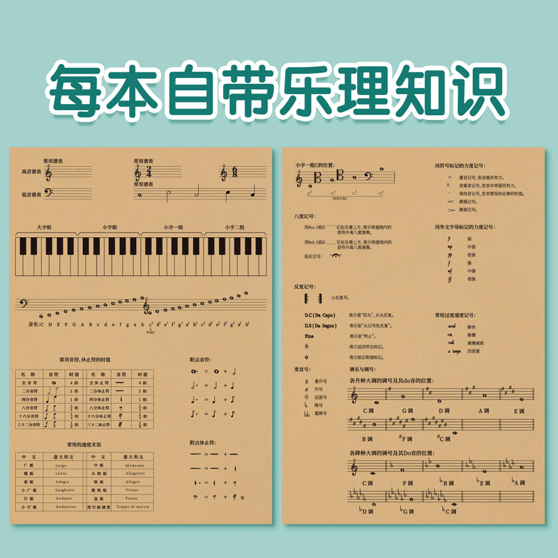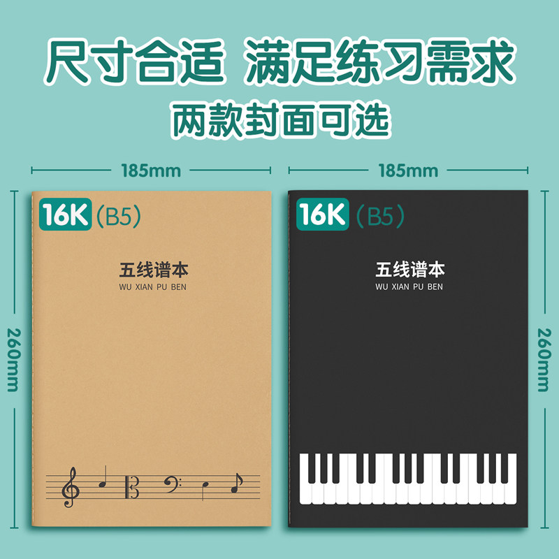 五线谱本子学生用乐谱本练习本牛皮纸本子16k小学生儿童划线宽距吉他钢琴音乐歌唱初学者专业音符琴谱册加厚