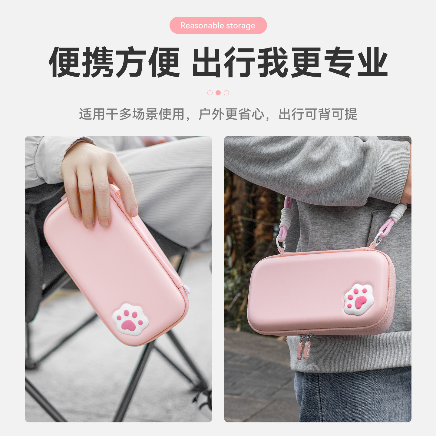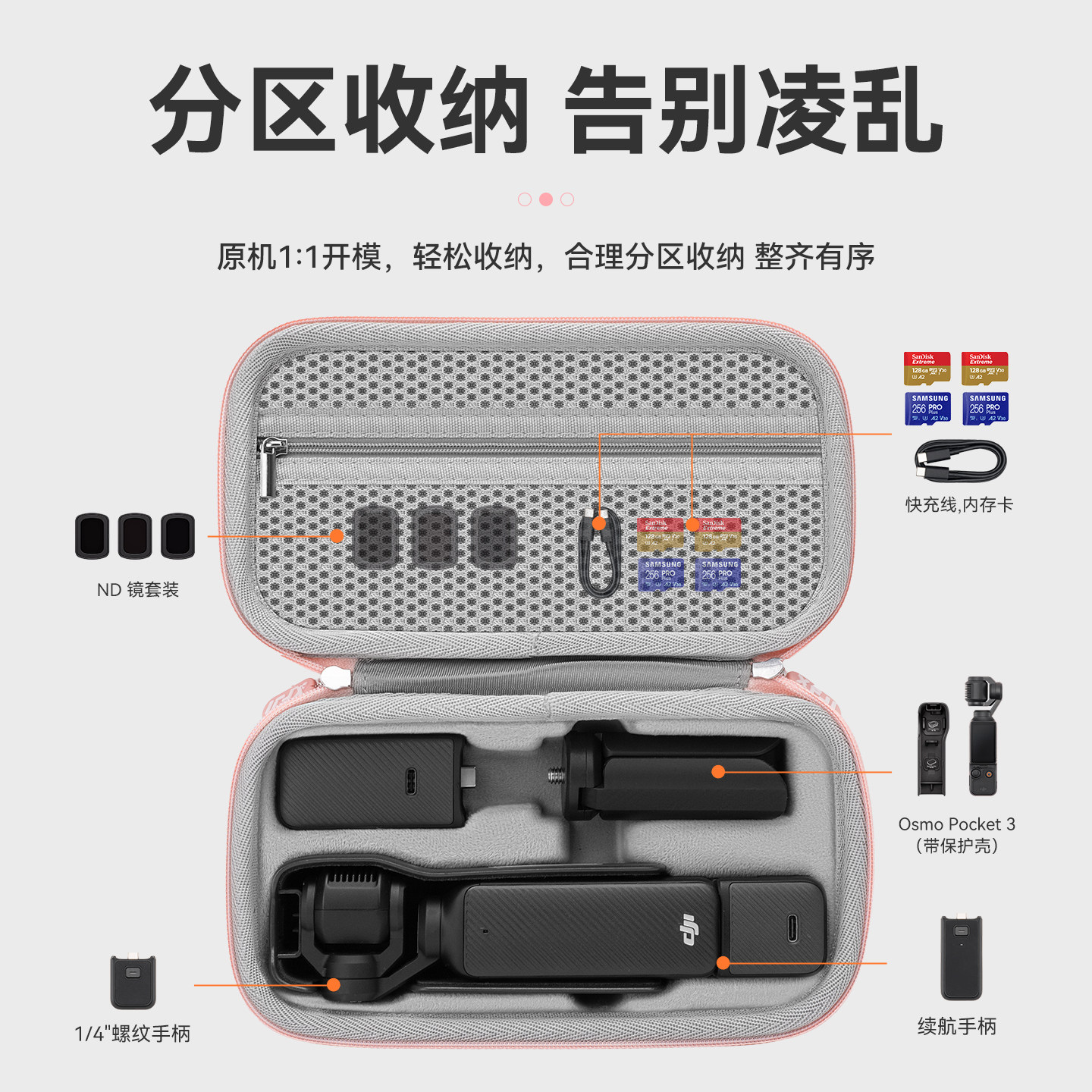 XFJI适用DJI大疆pocket3收纳包便携osmo灵眸多彩色猫爪口袋手持相机保护套P3长续航版套装户外防护盒硬壳配件
