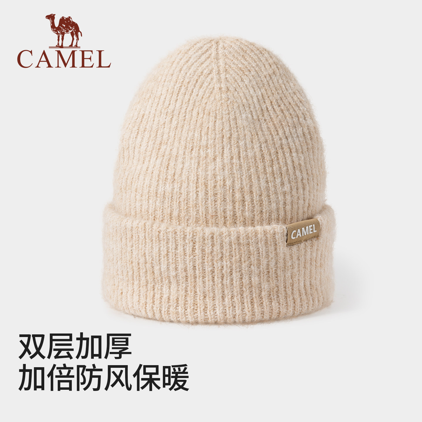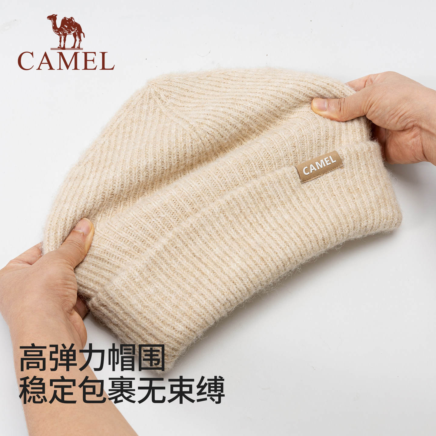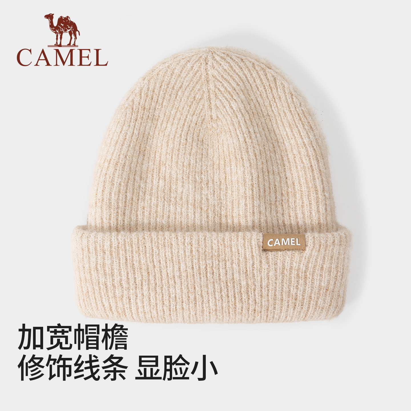 骆驼羊毛纱针织帽2025年新款秋冬季女冷帽纯色堆堆帽子保暖毛线帽