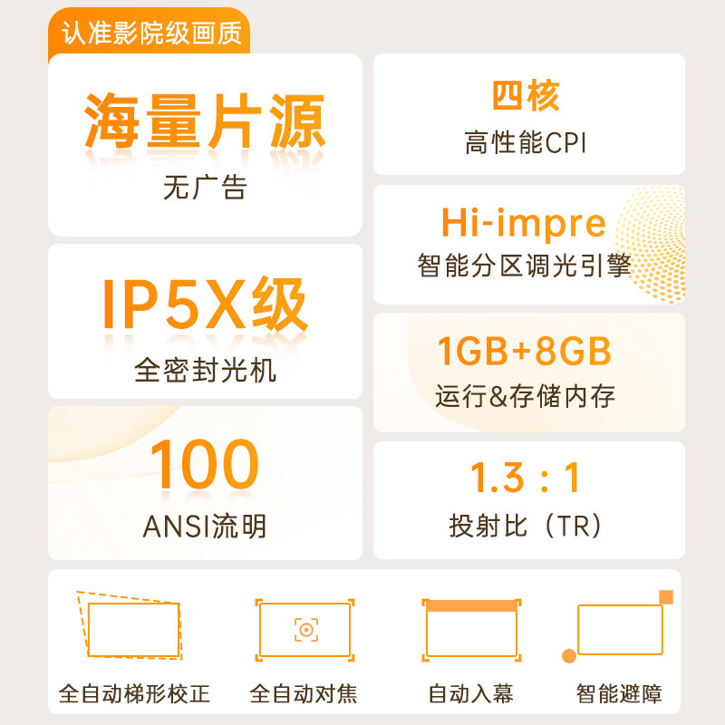 惠普投影仪全自动对焦 梯形矫正 自动入幕