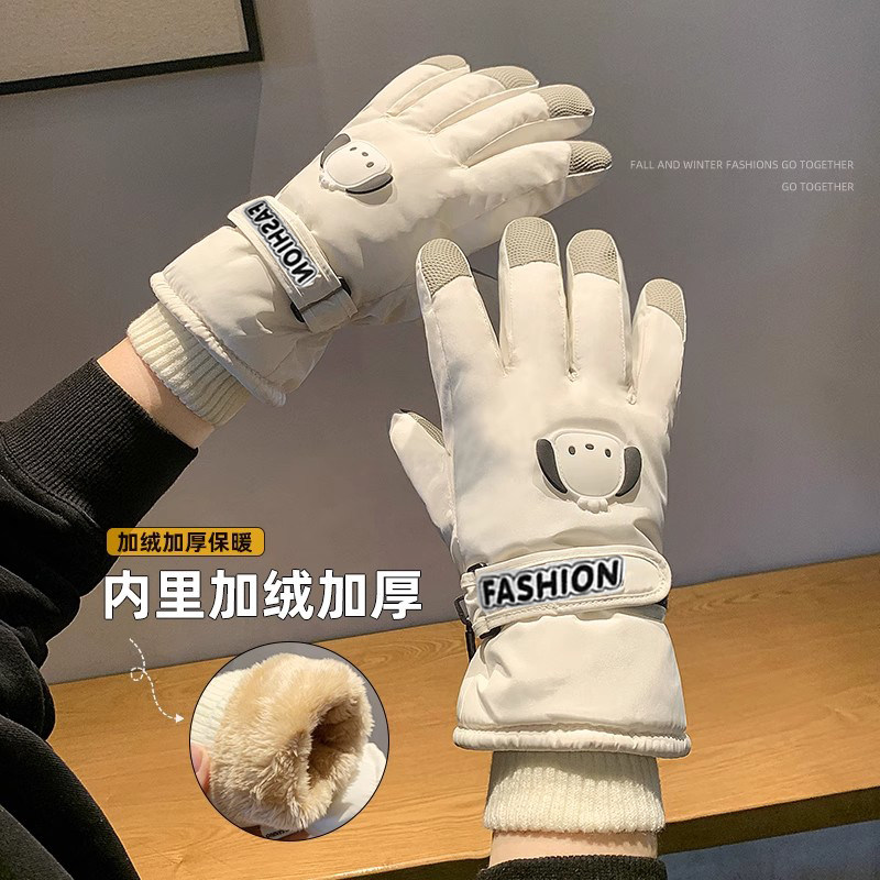 保暖手套冬天加绒加厚可爱麂皮绒女士骑行防寒骑车防风触屏冬季女