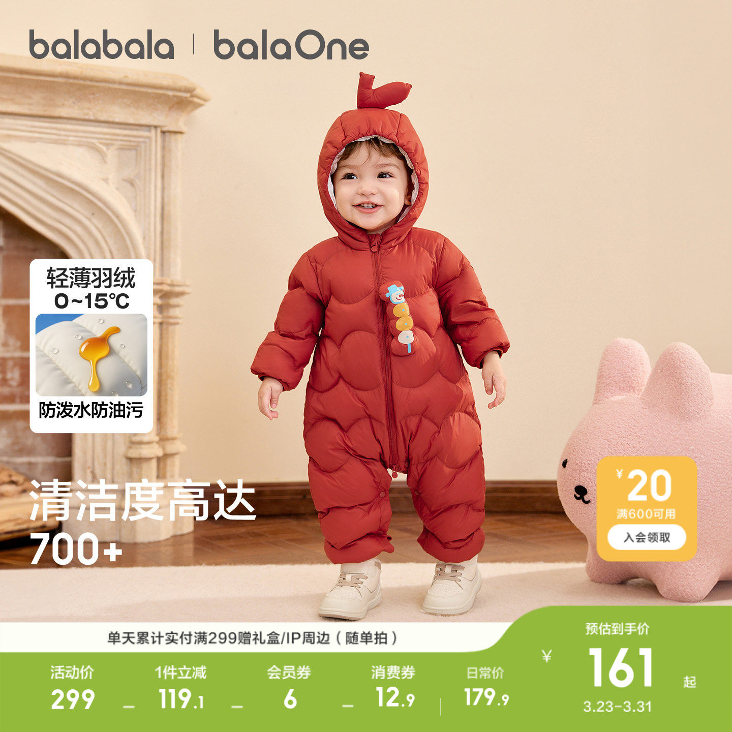 巴拉巴拉儿童轻薄羽绒服男女童婴儿连体衣2026宝宝冬装拜年服红色