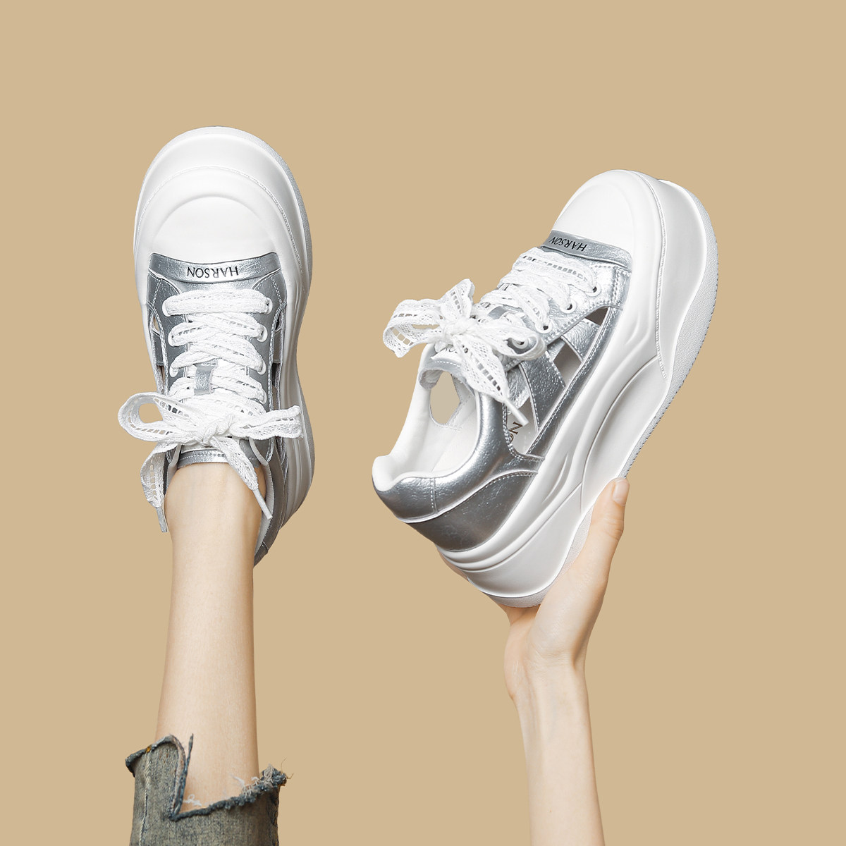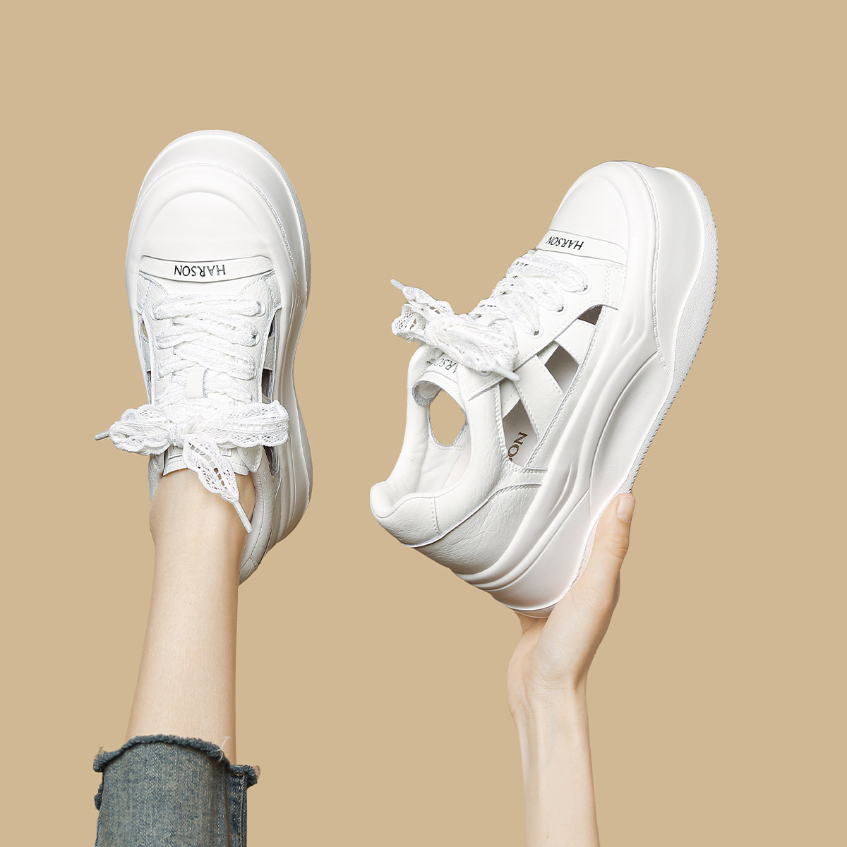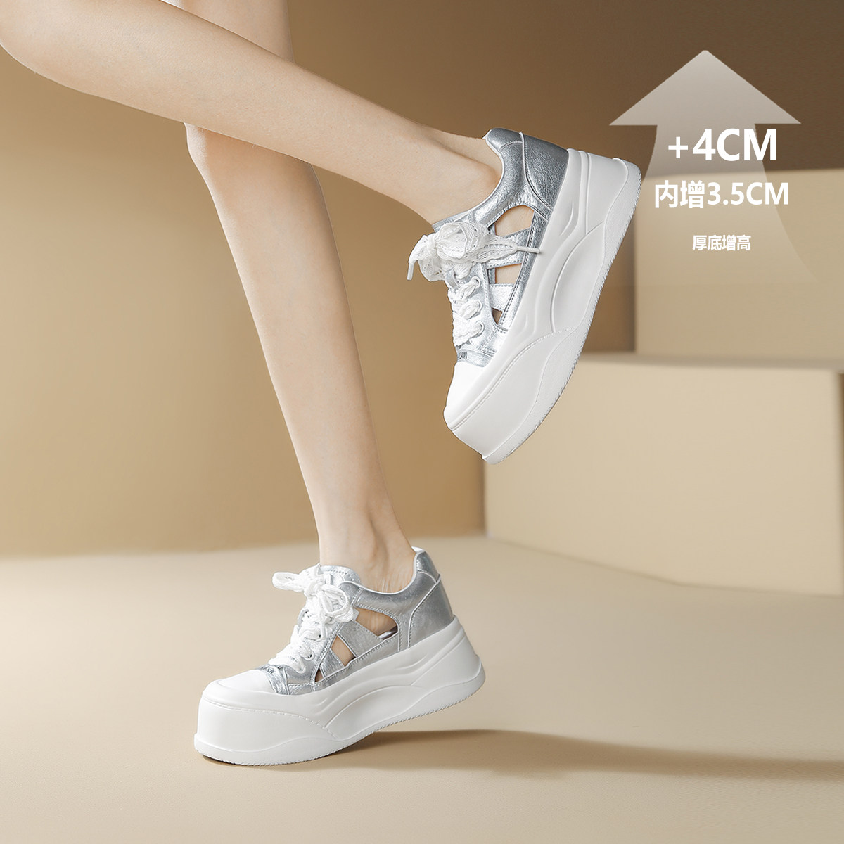哈森厚底增高镂空凉鞋女鞋子2026夏季爆款新款时尚百搭包头凉鞋