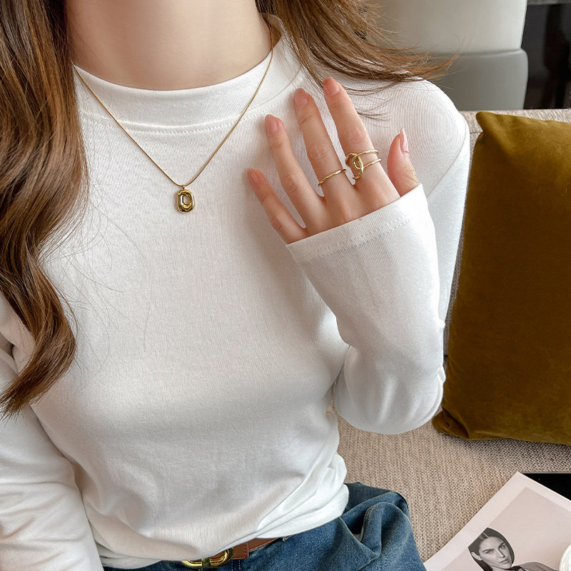 莫代尔白色打底衫女秋冬半高领中领立领内搭2025新款长袖T恤上衣
