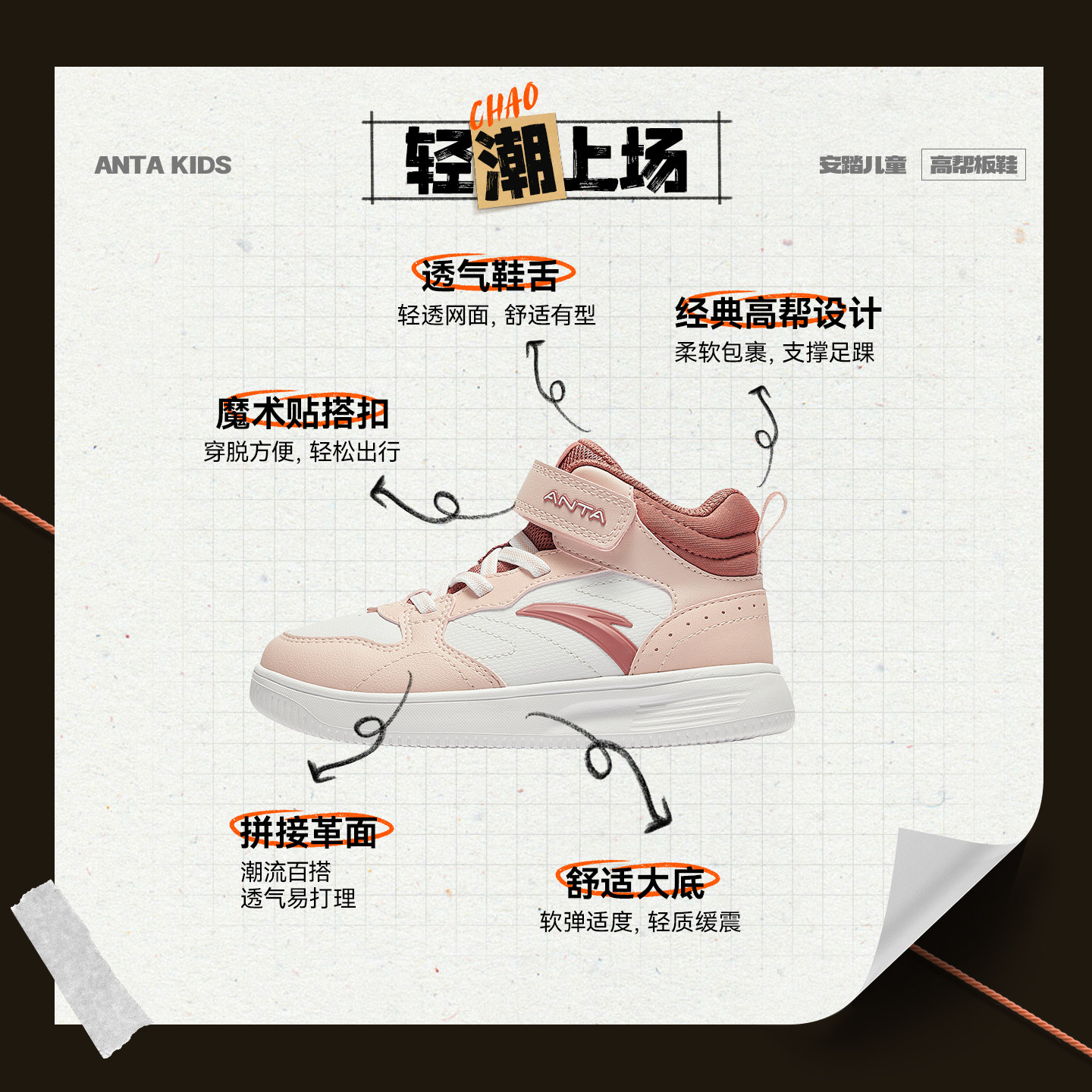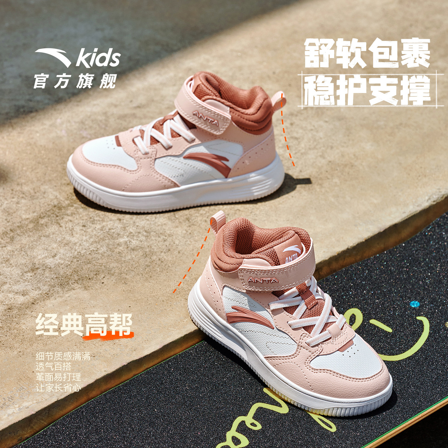 安踏儿童板鞋女童鞋子2025冬季新款户外防风高帮板鞋校园滑板鞋