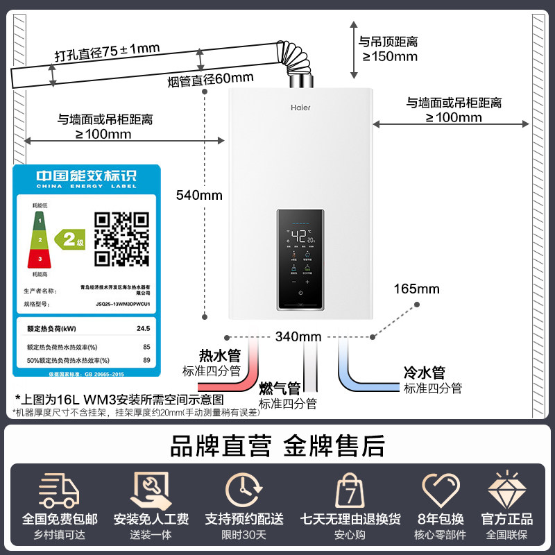海尔燃气热水器家用天然气13L16升水伺服变频恒温速热智能WM3