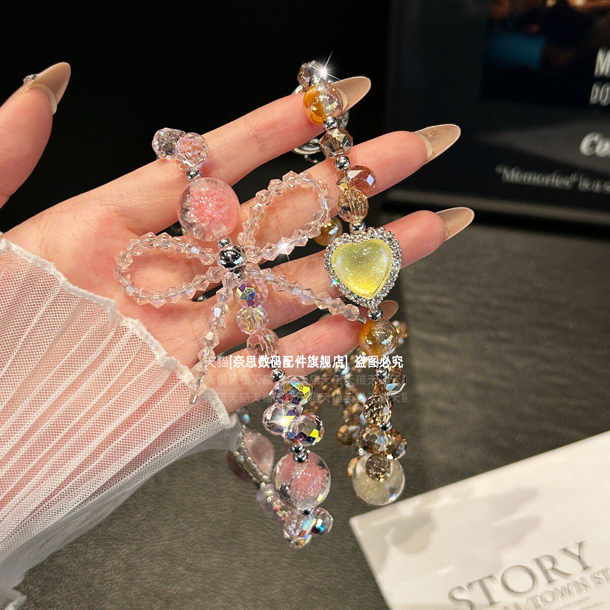 超美水晶爱心手机链重工手腕挂饰手工串珠精致挂链轻奢气质腕带手链超好看小众链条挂绳女旅游防丢垫片高级壳
