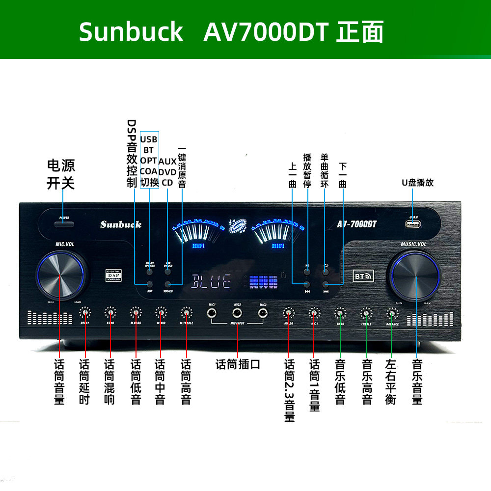 新款4声道大型蓝牙5.4功放机家用光纤同轴U盘