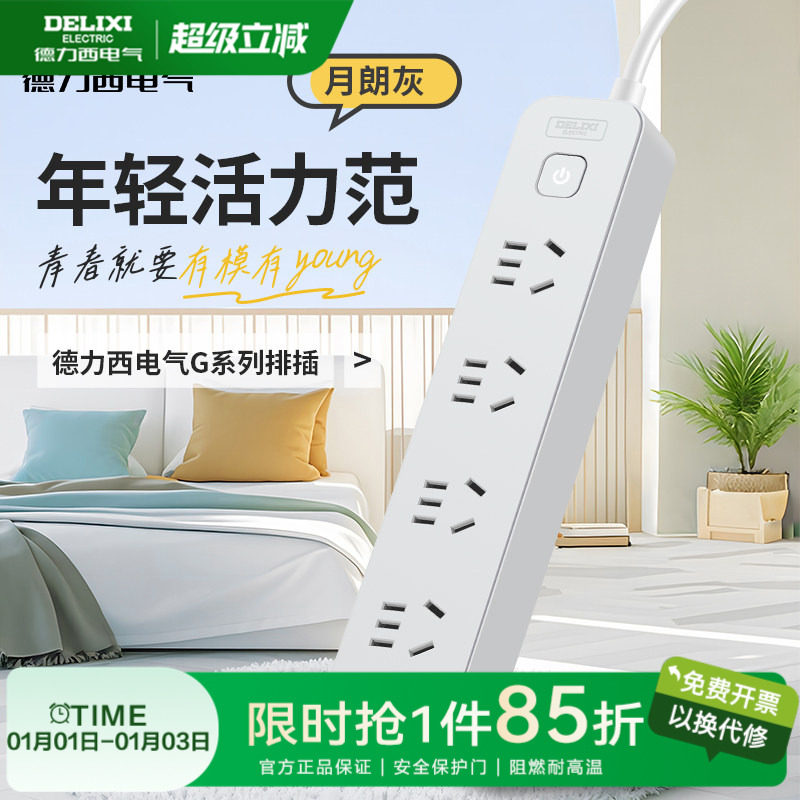 德力西插线板隐形隐藏式插排贴墙超薄插座扩展拖线板扁平插头插板
