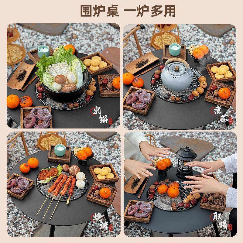 户外烧烤炉新款可折叠便携露营庭院多功能全套烤火取暖围炉煮茶桌