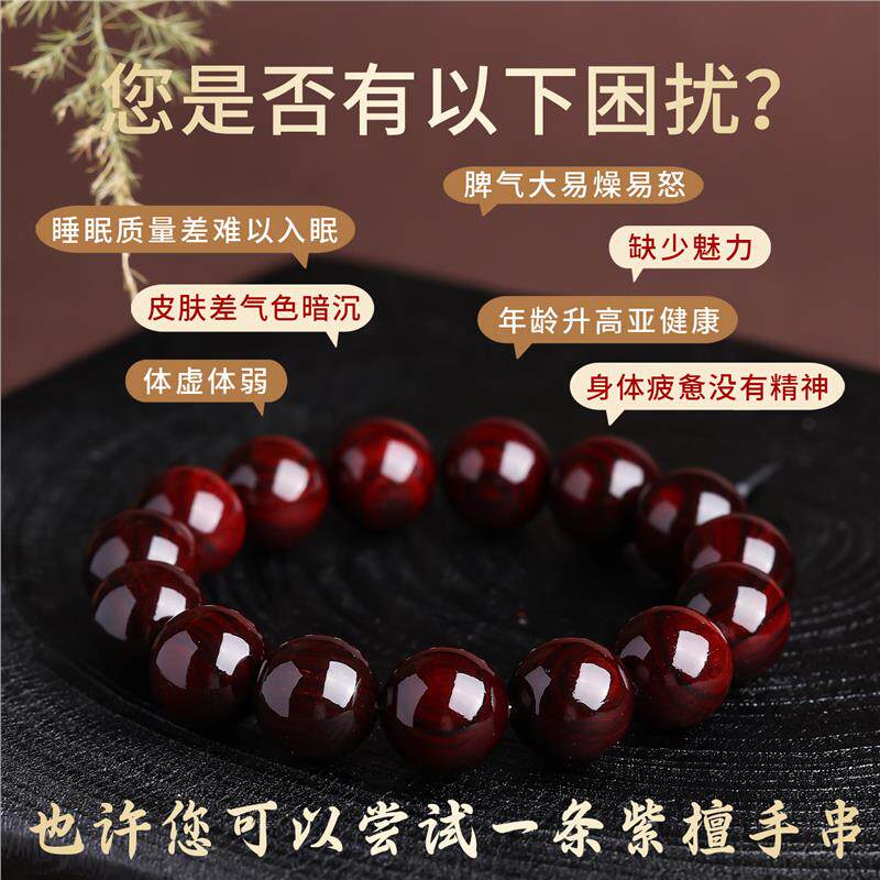 檀祥泰新款上新 印度小叶紫檀手串无金星男女款 文玩手链入门级