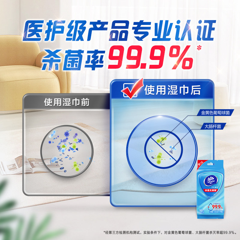 维达便携湿巾100片10包单片独立包装湿纸巾杀菌消毒运动出行装