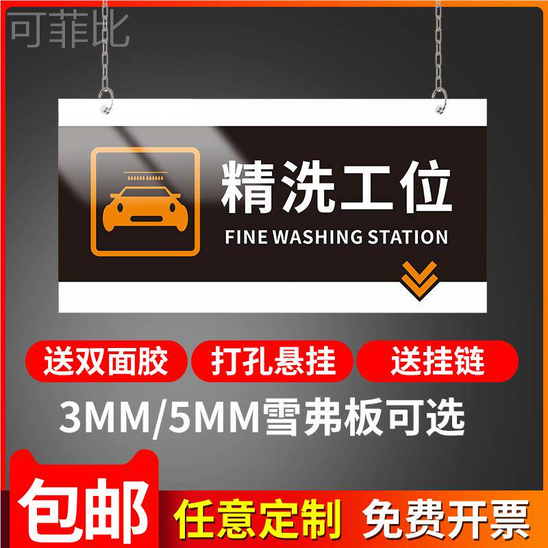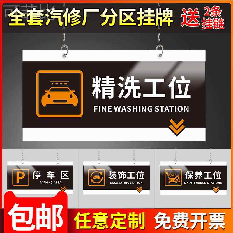 吊牌指示区域牌提示牌汽修厂汽车养护分区吊牌挂牌标识牌4s店汽车保养洗车精洗工位维修工位美容配件工位定制