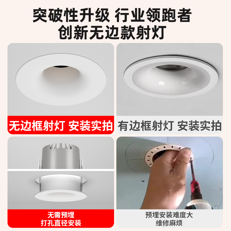 无边框射灯全光谱深防眩光led嵌入式客厅家用小山丘洗墙灯cob筒灯