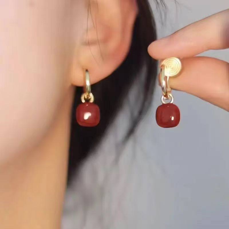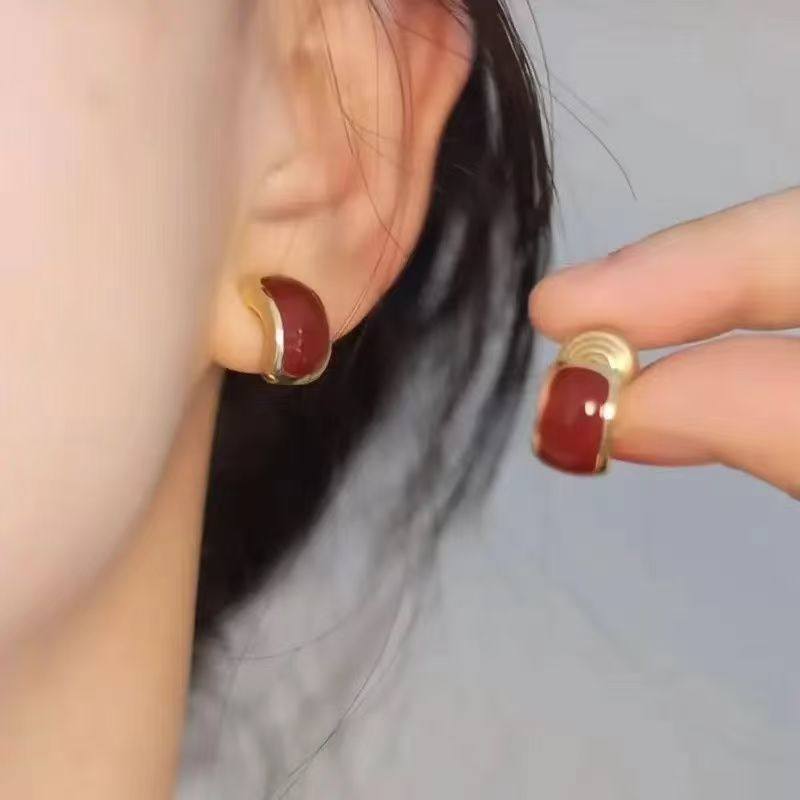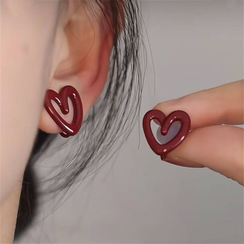 「心动不已」法式红色爱心蚊香盘耳夹女无耳洞复古轻奢高级感耳钉