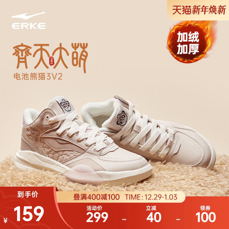 电池熊猫V2鸿星尔克板鞋高帮休闲女鞋冬季新款加绒厚底增高运动鞋