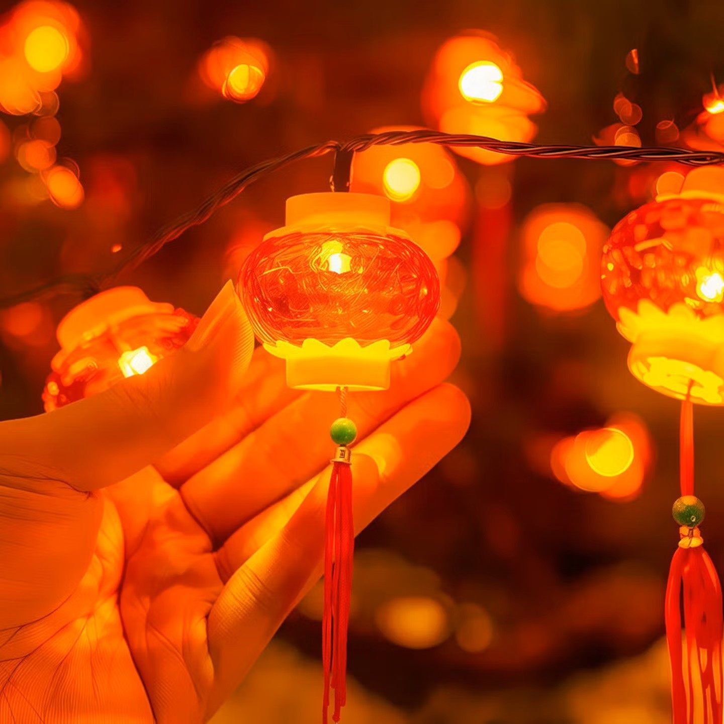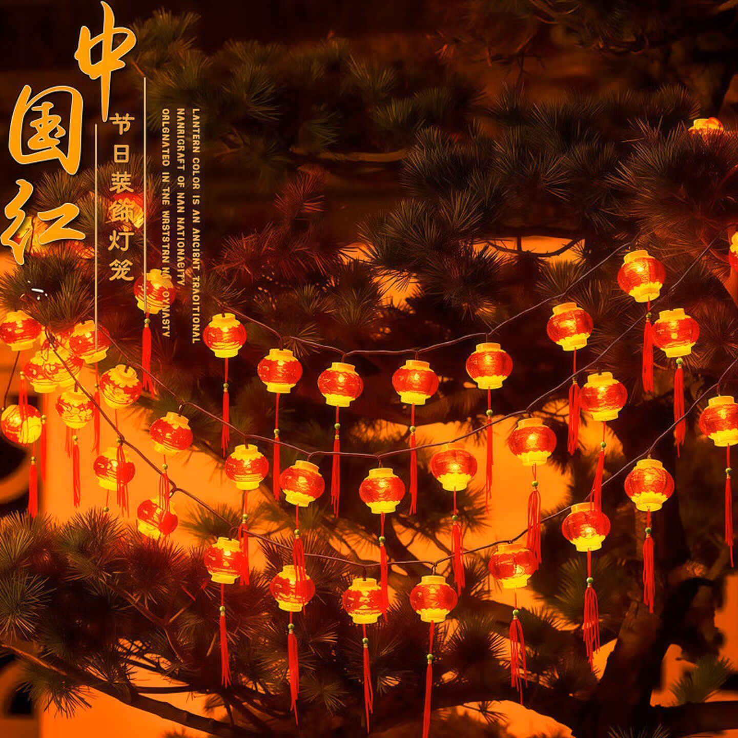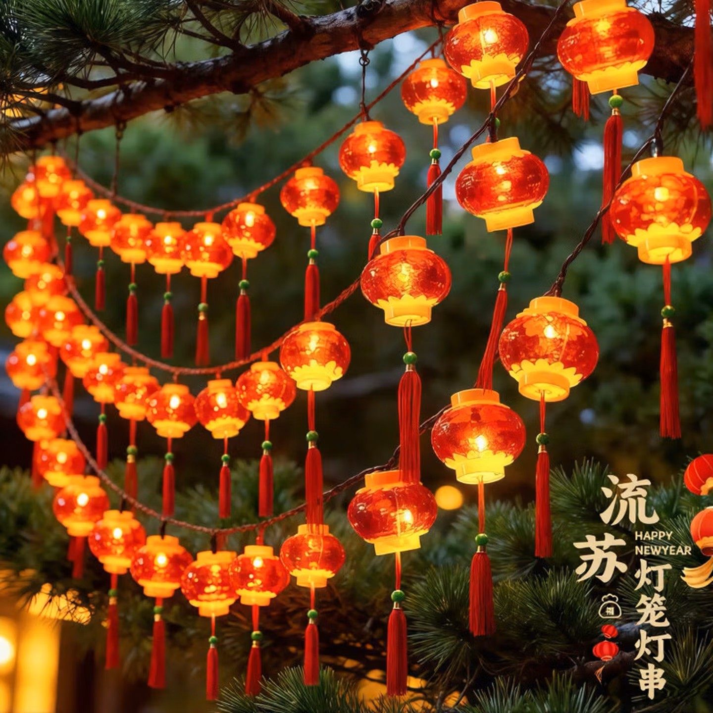 LED太阳能灯串新年小灯笼红灯笼春节装饰灯庭院插电室外户外氛围