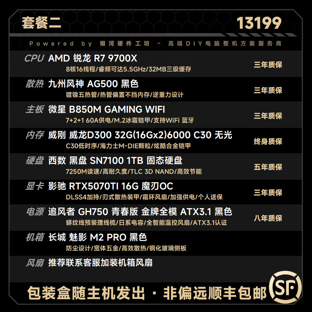 【B站51972推荐】5070Ti/影驰/华硕/七彩虹配置开车游戏电脑主机