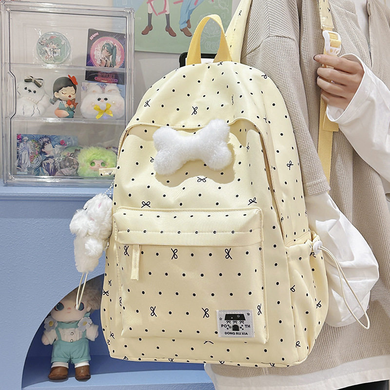 书包初中女生心氛围感波点蝴蝶结百搭高颜值女学生双肩包高中