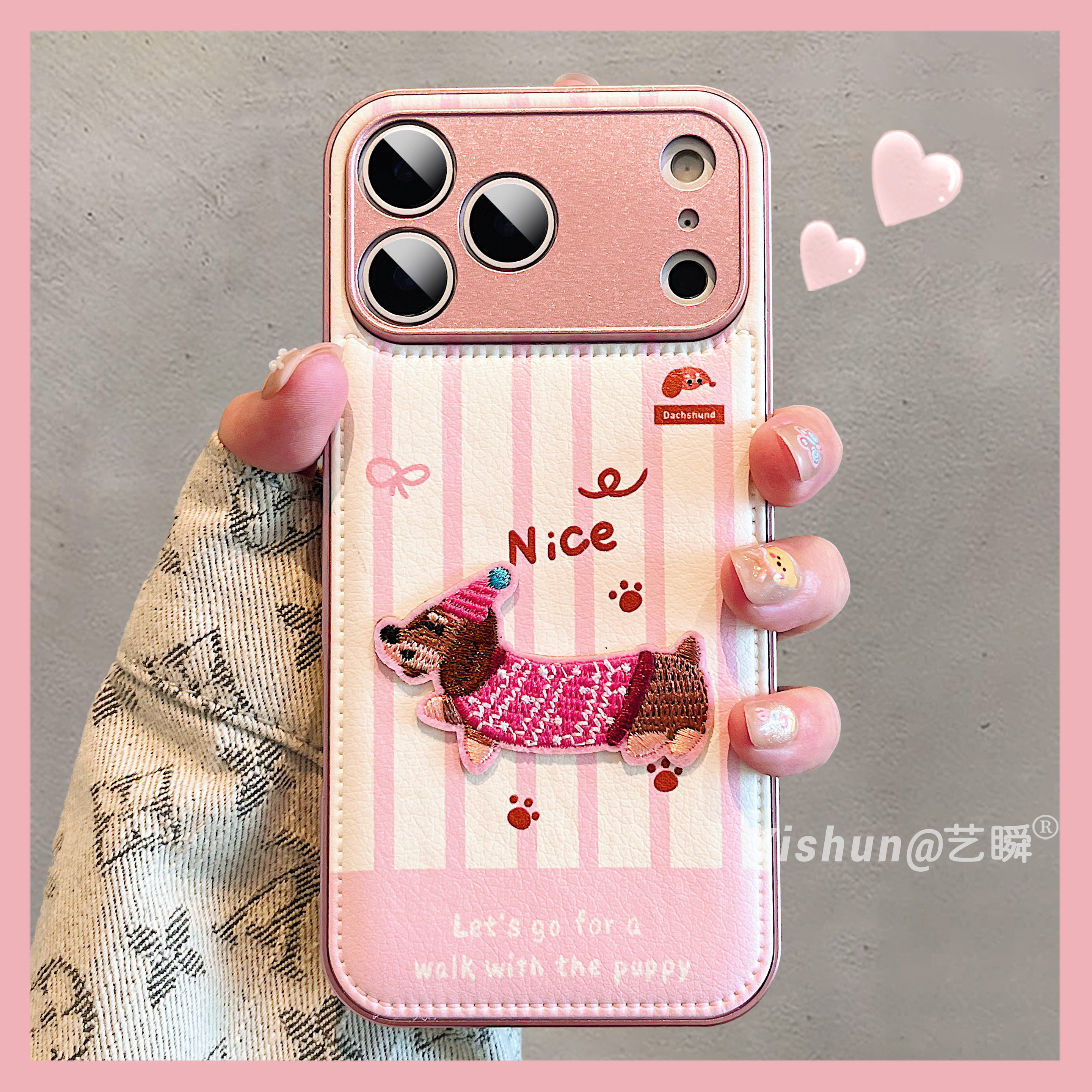 秋冬新款ins风韩系卡通可爱腊肠狗适用iPhone17ProMax手机壳苹果16pro皮质鼓包14全包镜头15趣味创意13保护套