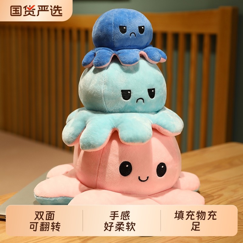 双面章鱼小公仔八爪鱼毛绒玩具可翻面翻转变脸玩偶生日礼物女海洋