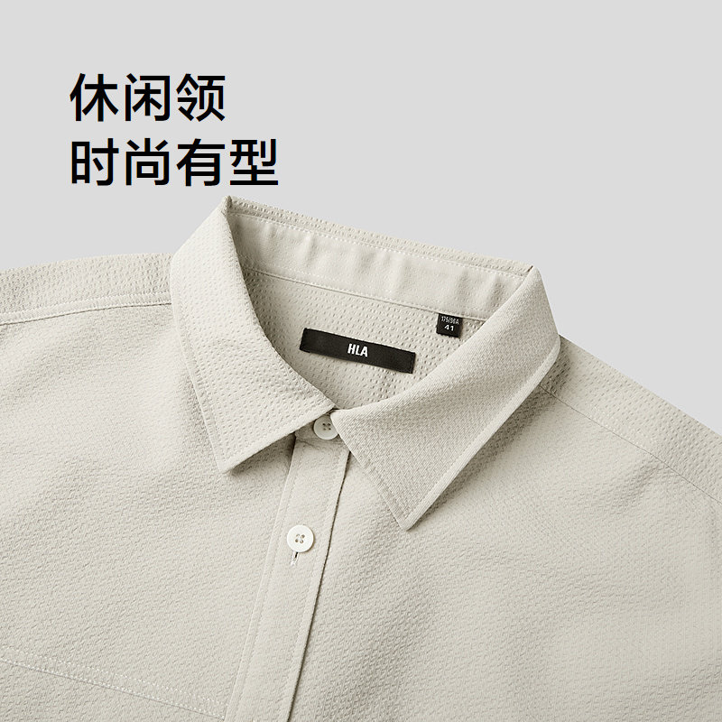 HLA/海澜之家休闲领短袖休闲衬衫26春夏新款宽松多口袋时尚衬衣男
