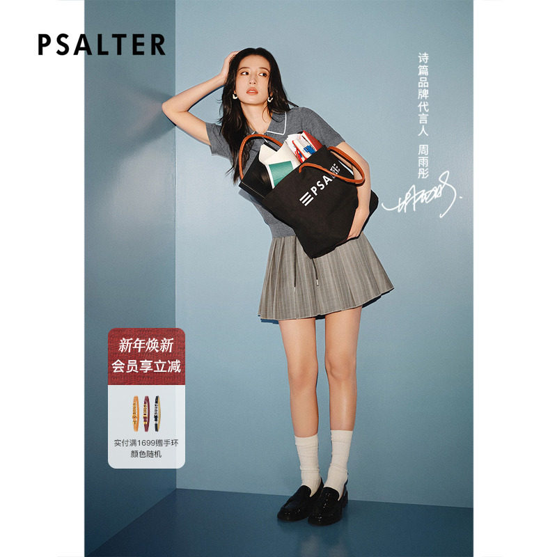 【周雨彤同款】PSALTER诗篇花呢高腰显瘦抽绳百褶半裙2025春新款