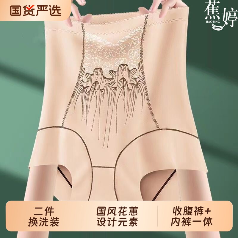 蕉婷高腰收腹小肚子提臀裤无痕束腰刺绣打底裤女运动内裤塑身美体