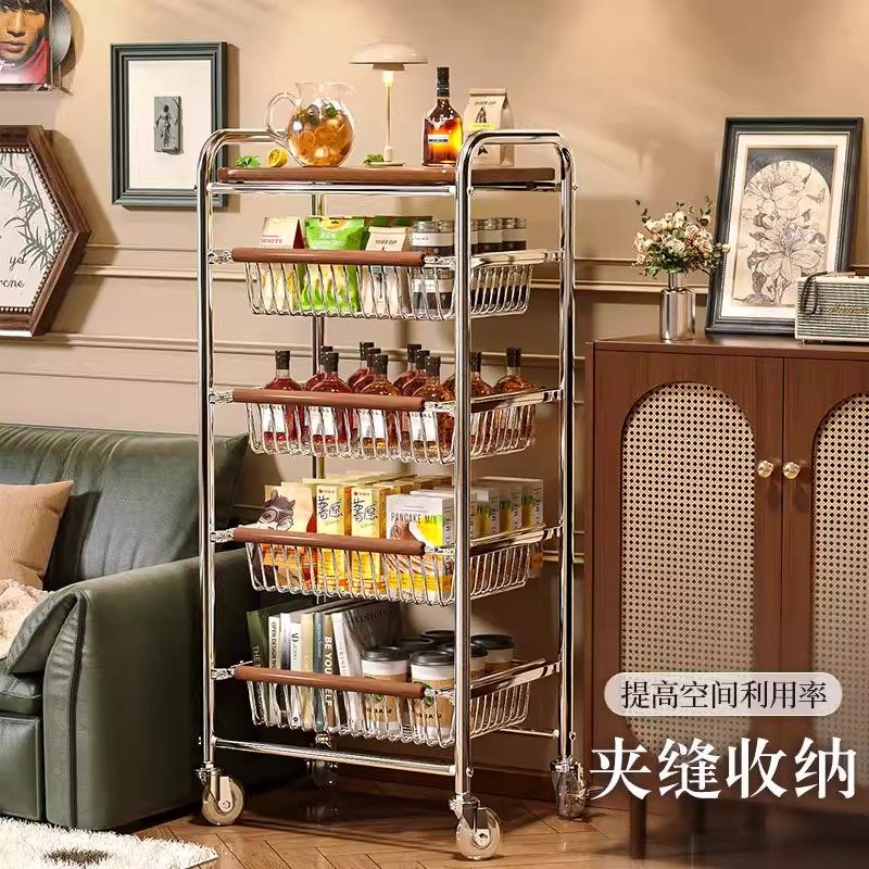 中古风零食置物架多功能夹缝小推车多层果蔬厨房菜篮可移动收纳架