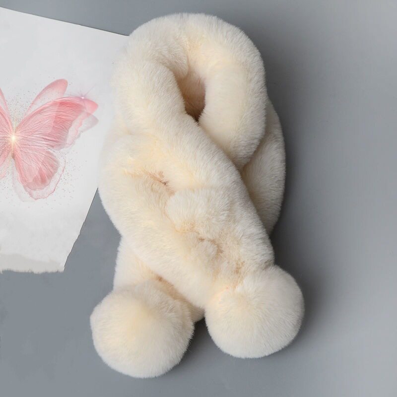 毛绒围巾女款2025新款冬韩系氛围感可爱百搭保暖交叉毛领围脖护颈