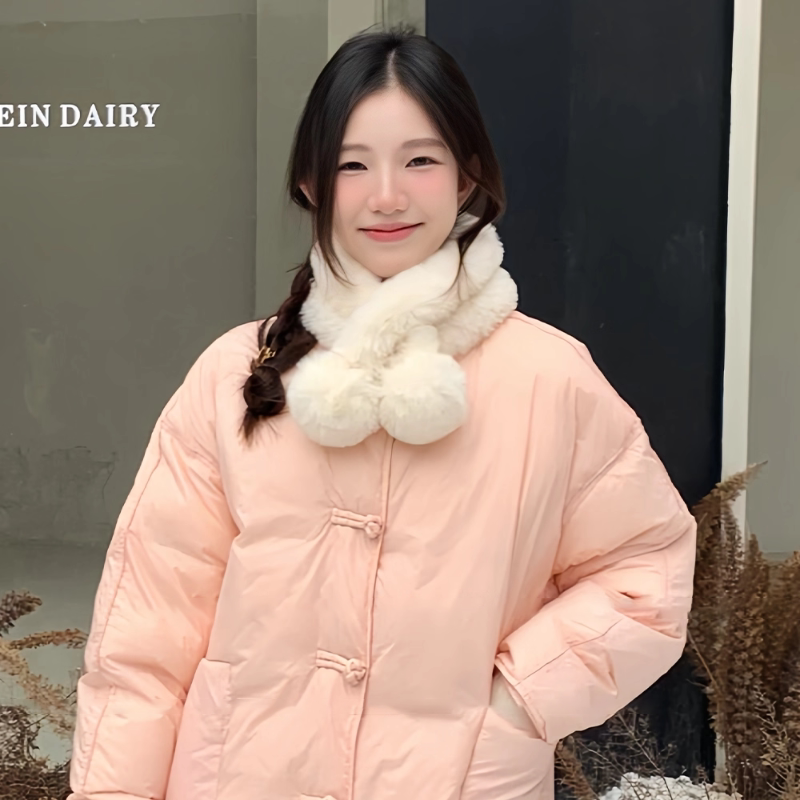 白色毛绒围巾女2026新款冬护颈羽绒服毛领加厚保暖毛毛交叉围脖