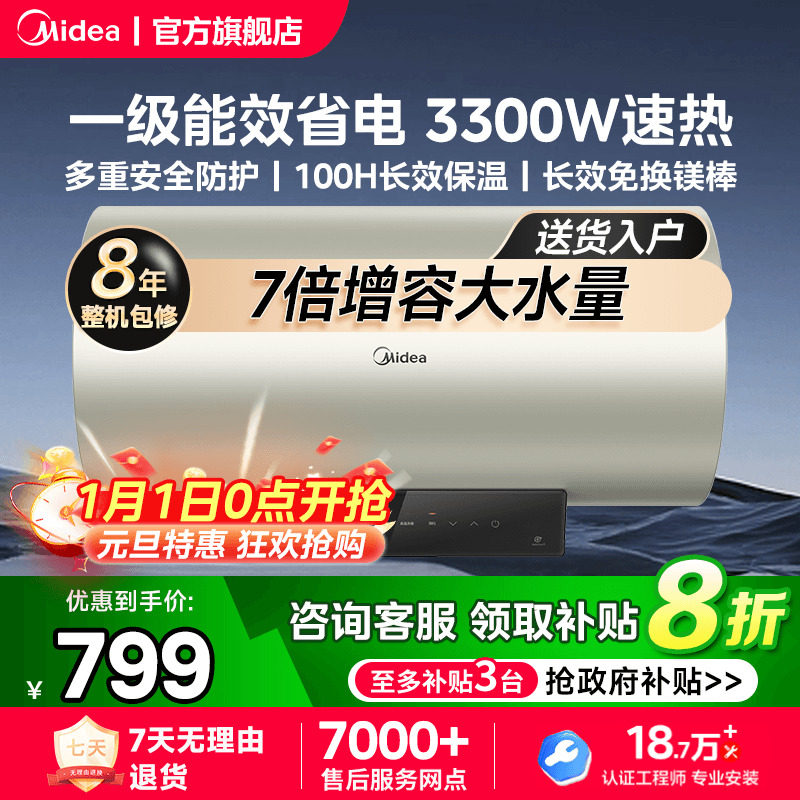 美的电热水器JE7Pro一级能效变频速热60L80升免换镁棒洗澡家用